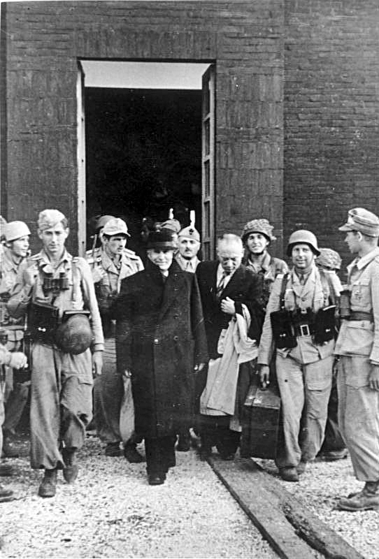 Although Mussolini was a dictator he did not hold the supreme power that his friend, Adolf Hitler, had in Germany. Italy still had a king and a council with the power to remove Mussolini, and by July 1943 they had had enough. On 24th July the Grand Council passed a vote of no-confidence in their leader; Il Duce was summoned to the palace the next day, where King Victor Emmanuel told him that he was to be replaced by Marshal Badoglio. Mussolini must have been stunned when the king told him that ‘Italy has gone to bits. The soldiers don’t want to fight any more. At this moment you are the most hated man in Italy.’ The dictator, who had been in power since 1922, was further stunned to find himself immediately arrested on the orders of the monarch.